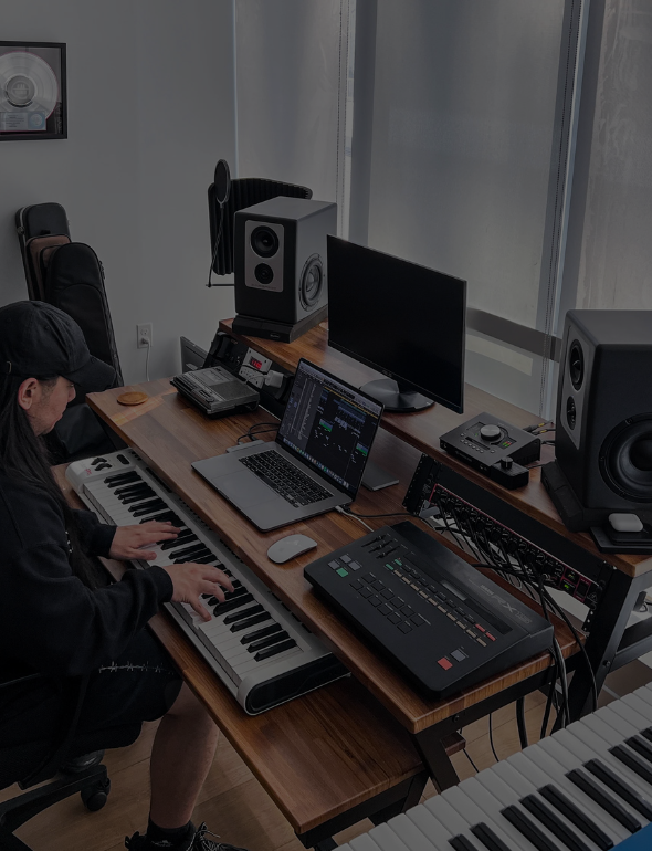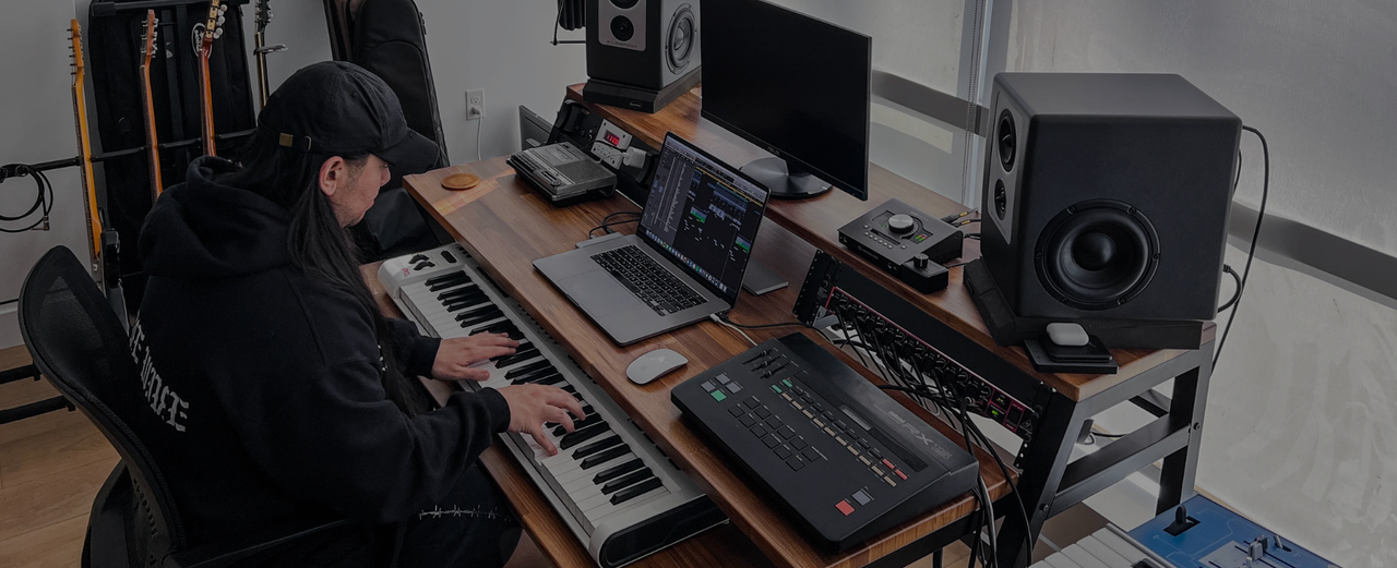 Wavebone - HEADQUARTER Studio Desk with Height adjustable Keyboard Stand - Classic Wood